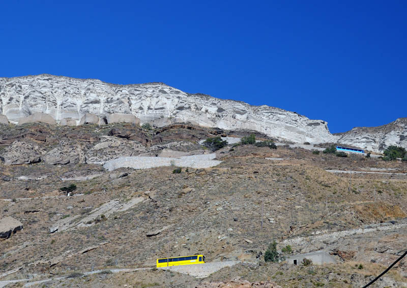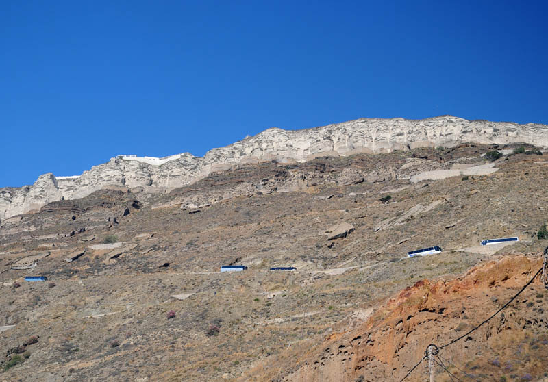 Да, билет по маршруту порт – Фира (столица острова и основной серпантин, из которых я видел на Санторини) на большом кондиционированном автобусе (а маленьких, похоже, в Греции не бывает) стоит 2.2 евро. Время в пути 20-35 минут. Автобусы ходят по расписанию.