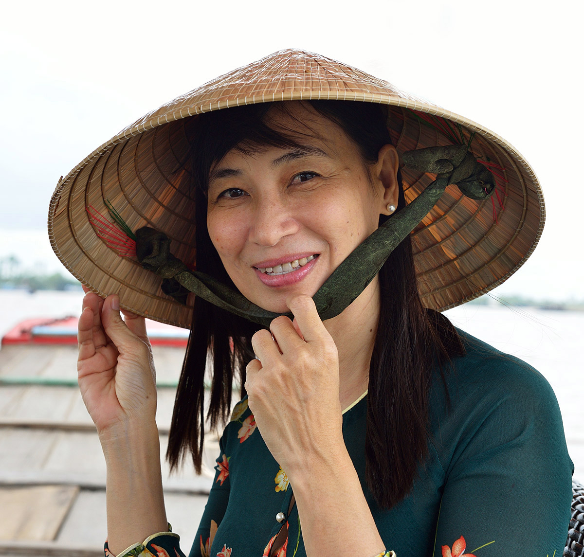 Портрет вьетнамки из города Митхо в дельте реки Меконг во Вьетнаме.