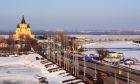 Рыбинск. Вид с борта прогулочного теплохода, следующего по Волге. Rybinsk. View from on board a pleasure boat traveling along the Volga.